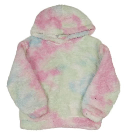 Mátovo-růžovo-světlemodrá batikovaná huňatá mikina s kapucí SHEIN