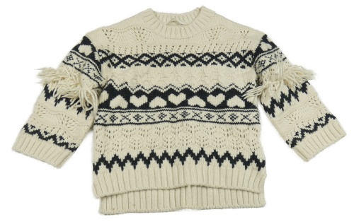Smetanovo-černý vzorovaný svetr s třásněmi M&S