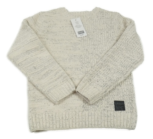 Nové - smetanovo-černý melírovaný žinylkový svetr s nášivkou F&F