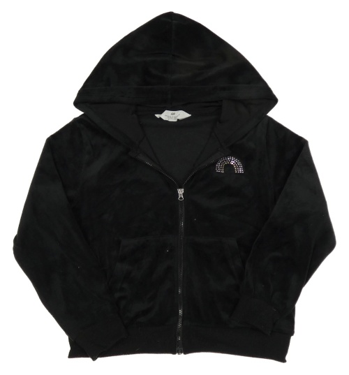 Černá plyšová propínací mikina s duhou z kamínků a kapucí H&M