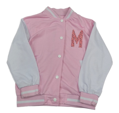 Světlerůžovo-bílá propínací baseballová mikina s písmenkem