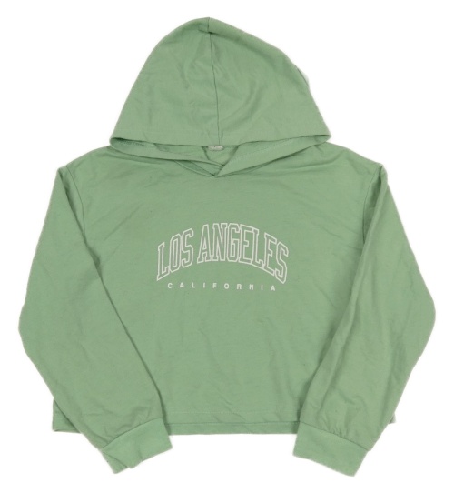Olivová crop mikina s nápisy a kapucí