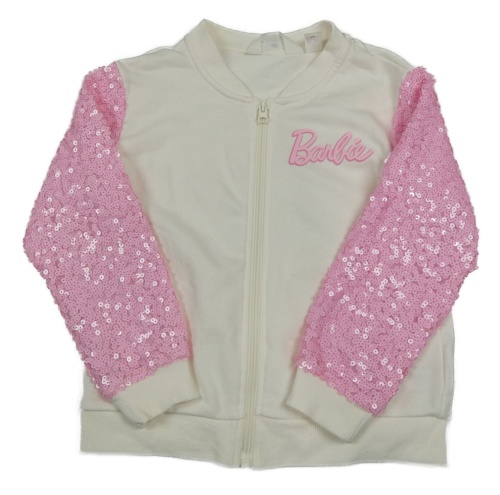 Smetanovo-růžová propínací mikina s Barbie a flitry H&M