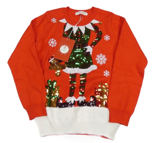 Nové - červeno-bílý svetr s obrázkem z flitrů