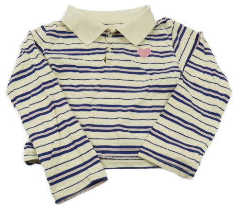 Smetanovo-tmavomodro-růžová pruhovaná crop mikina se srdíčkem a límečkem H&M