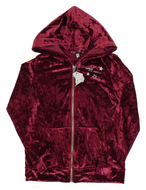 Nové - vínová sametová propínací mikina s kapucí Pocopiano