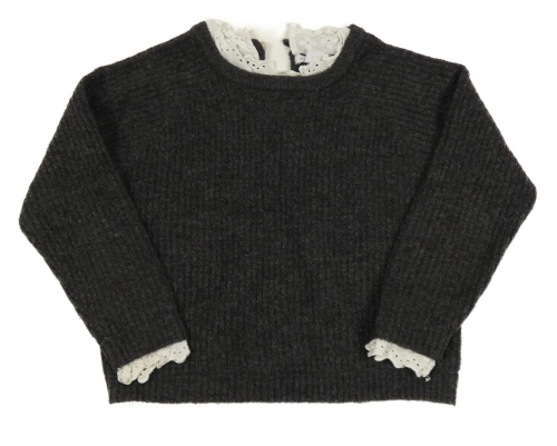 Tmavošedý melírovaný žebrovaný svetr s bílými volánky s madeirou PRIMARK