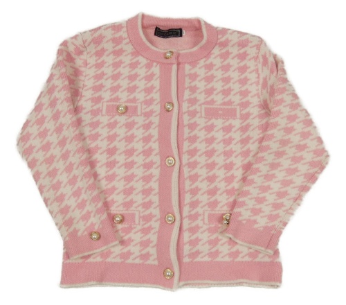 Růžovo-bílý vzorovaný propínací svetr