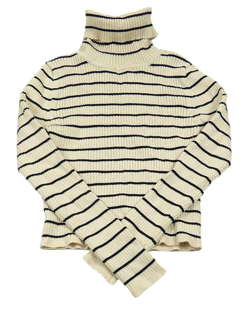 Béžovo-černý pruhovaný žebrovaný crop svetrový rolák Lefties