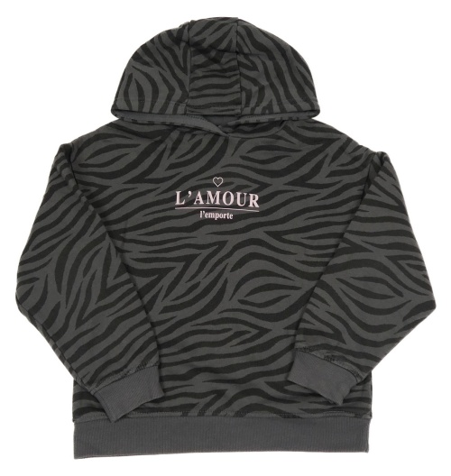 Tmavošedá vzorovaná mikina s růžovým nápisem a kapucí Primark