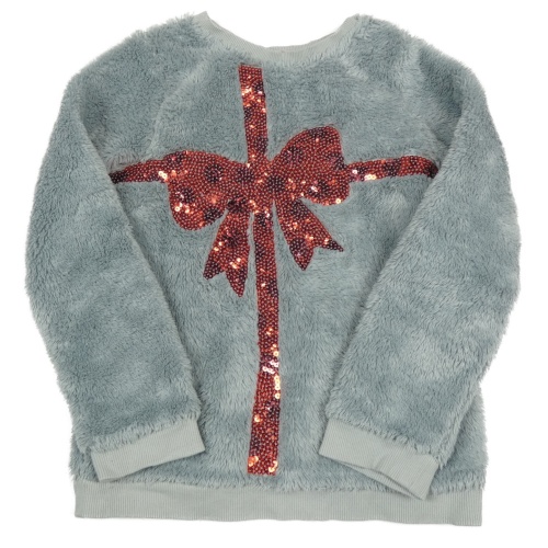 Šedá chlupatá mikina s mašlí z flitrů
