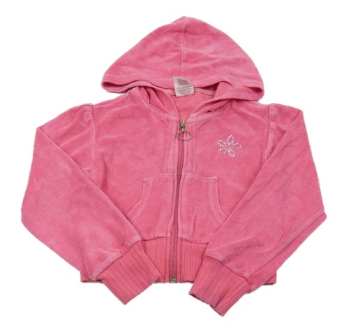 Růžová sametová propínací crop mikina s květem