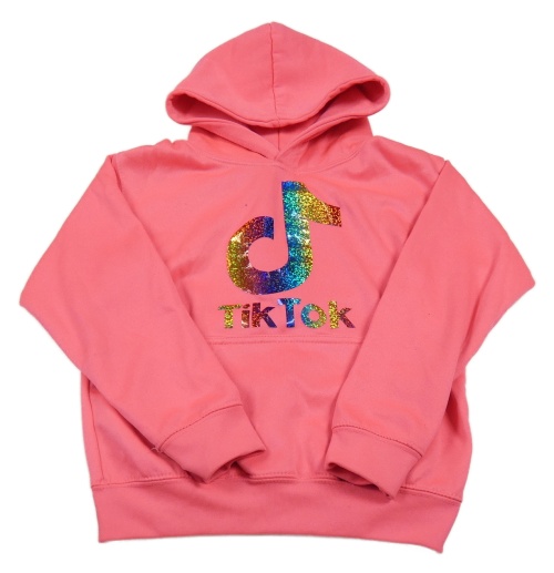 Neonově růžová mikina s logem TikTok a kapucí AWDis