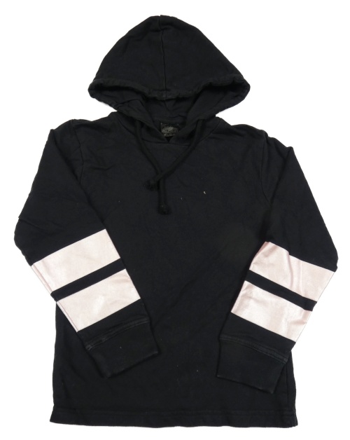 Černá mikina s růžovými pruhy na rukávech a kapucí