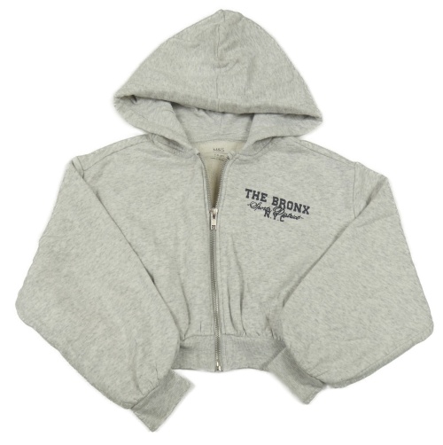 Šedá melírovaná propínací crop mikina s nápisem a kapucí M&S