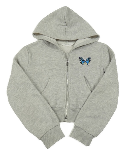Šedá melírovaná propínací crop mikina s motýlem a kapucí Shein