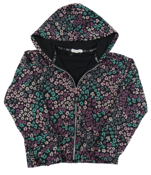 Černo-fialovo-růžovo-zelená propínací crop mikina s leopardím vzorem a kapucí