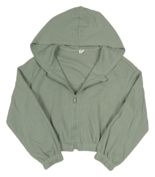 Zelená žebrovaná lehká crop propínací mikina s kapucí Shein