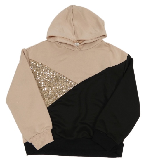 Pudrovo-černá mikina s flitry a kapucí Shein