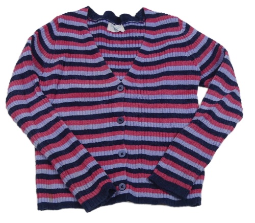 Tmavomodro-lila-tmavorůžový pruhovaný žebrovaný žinylkový propínací svetr Primark