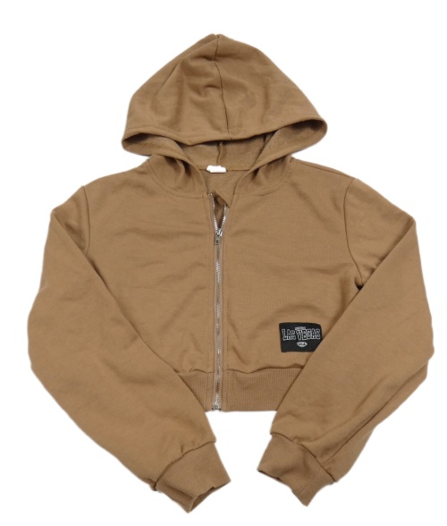 Hnědá propínací crop mikina s nášivkou a kapucí Shein