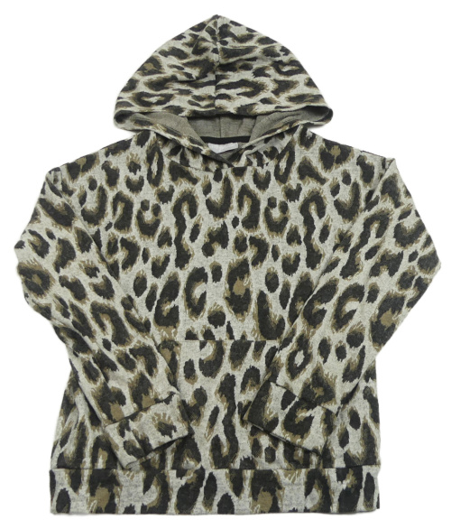 Šedo-černo-hnědá lehká leopardí pletená mikina s kapucí Matalan