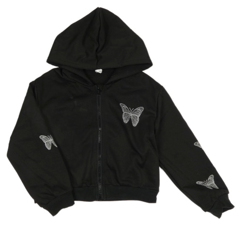 Černá propínací crop mikina s motýly a kapucí Shein