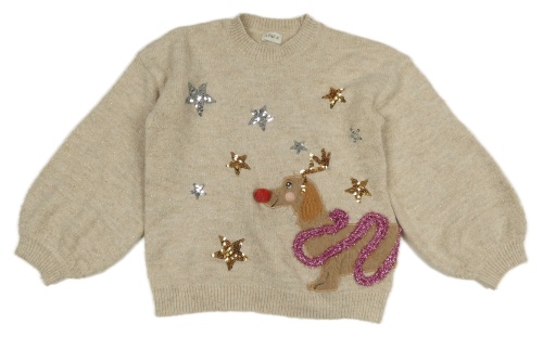 Béžovo-zlatý svetr s pejskem F&F