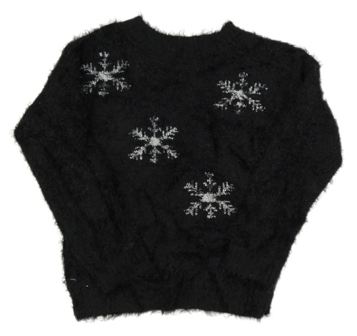 Černý chlupatý svetr s vločkami Alive