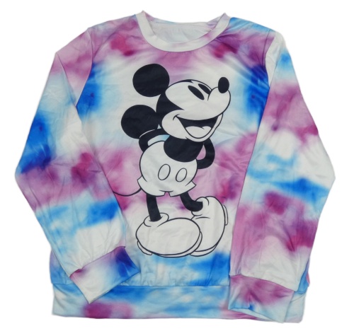 Růžovo-modro-bílá batikovaná mikina s Mickeym