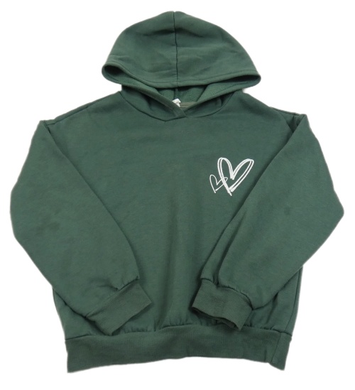 Tmavozelená mikina se srdíčky a kapucí Shein
