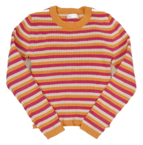 Růžovo-bílo-oranžový pruhovaný žebrovaný žinylkový svetr Primark