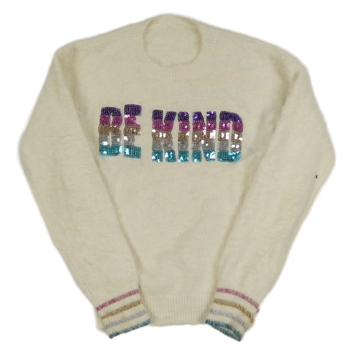 Smetanový chlupatý svetr s nápisem z flitrů Dunnes