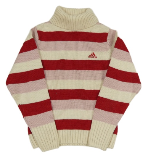 Růžovo-červeno-smetanový pruhovaný svetr s logem a rolákem Adidas