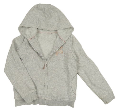 Světlešedá melírovaná zateplená propínací mikina s hvězdicí s perlami a kapucí Nutmeg