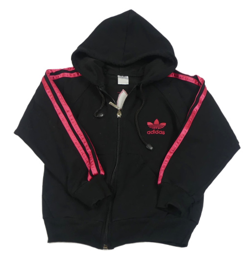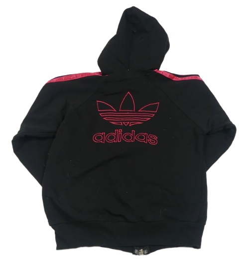 Černo-tmavorůžová propínací crop mikina s kapucí Adidas