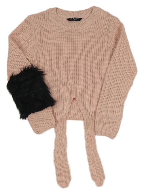 Světlerůžový crop svetr s kožíškem a uzlem Select