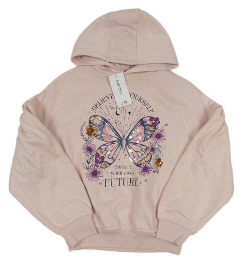 Nové - světlerůžová oversize crop mikina s motýlkem a flitry a kapucí George