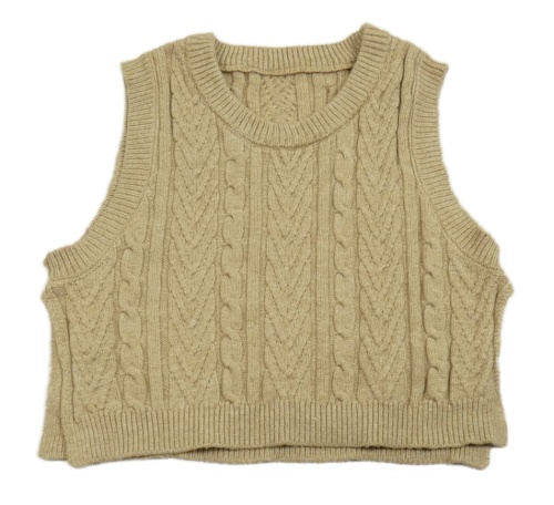 Béžová pletená copánková crop vesta