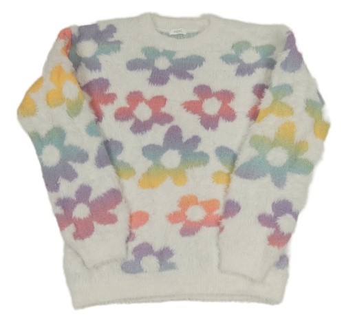 Bílo-barevný chlupatý květovaný vlněný svetr Next