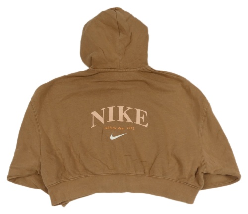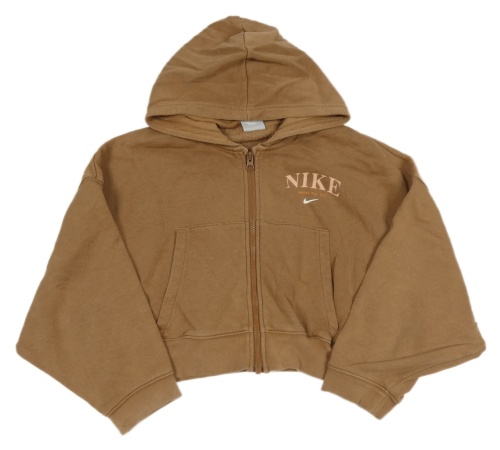 Hnědá propínací crop oversize mikina s logem a kapucí Nike