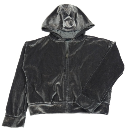Tmavošedo-bronzová sametová propínací crop mikina s kapucí Next