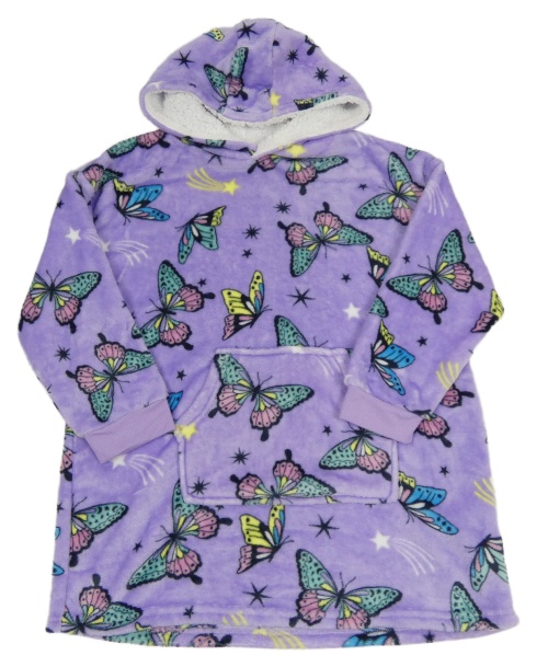 Fialová plyšová domácí oversize mikina s motýlky a kapucí PRIMARK