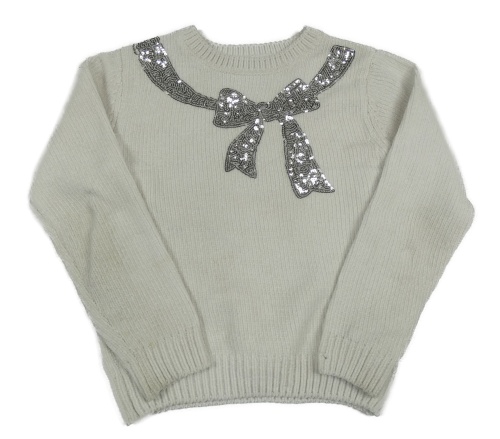 Smetanový žinylkový svetr s mašlí z flitrů Primark