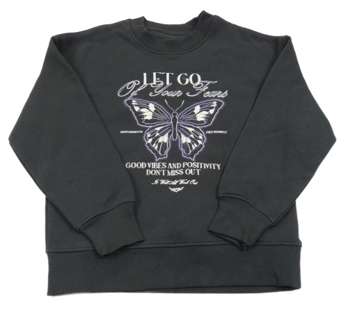 Tmavošedá mikina s motýlkem a nápisem Matalan