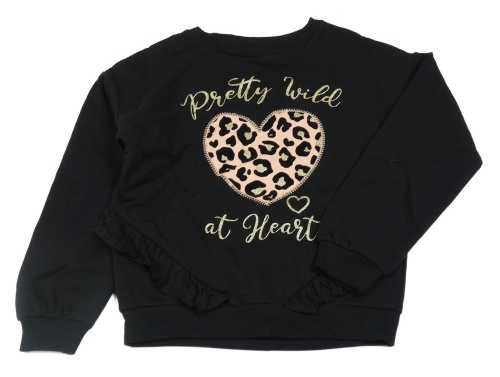Černá mikina se vzorovaným srdíčkem s flitry a zlatými nápisy a volánky C&A
