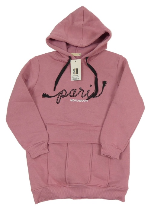 Nové - starorůžová teplá dlouhá mikina s nápisy a kapucí Boni Bon's
