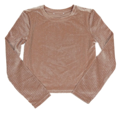 Pudrové třpytivě pruhované sametové crop mikinotriko RESERVED
