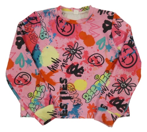 Růžovo-barevná crop lehká mikina s grafitty Shein