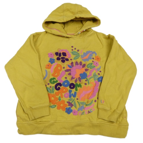 Okrová mikina s květy a nápisy a kapucí FAT FACE